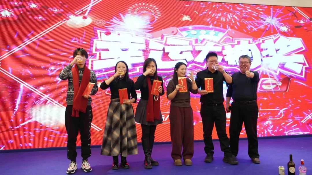 各位領(lǐng)導逐一上臺為大家抽取并為幸運兒頒發(fā)獎品,同時臨時增設(shè)超額獎勵和隨機紅包,逐漸將晚宴氣氛推向高潮。